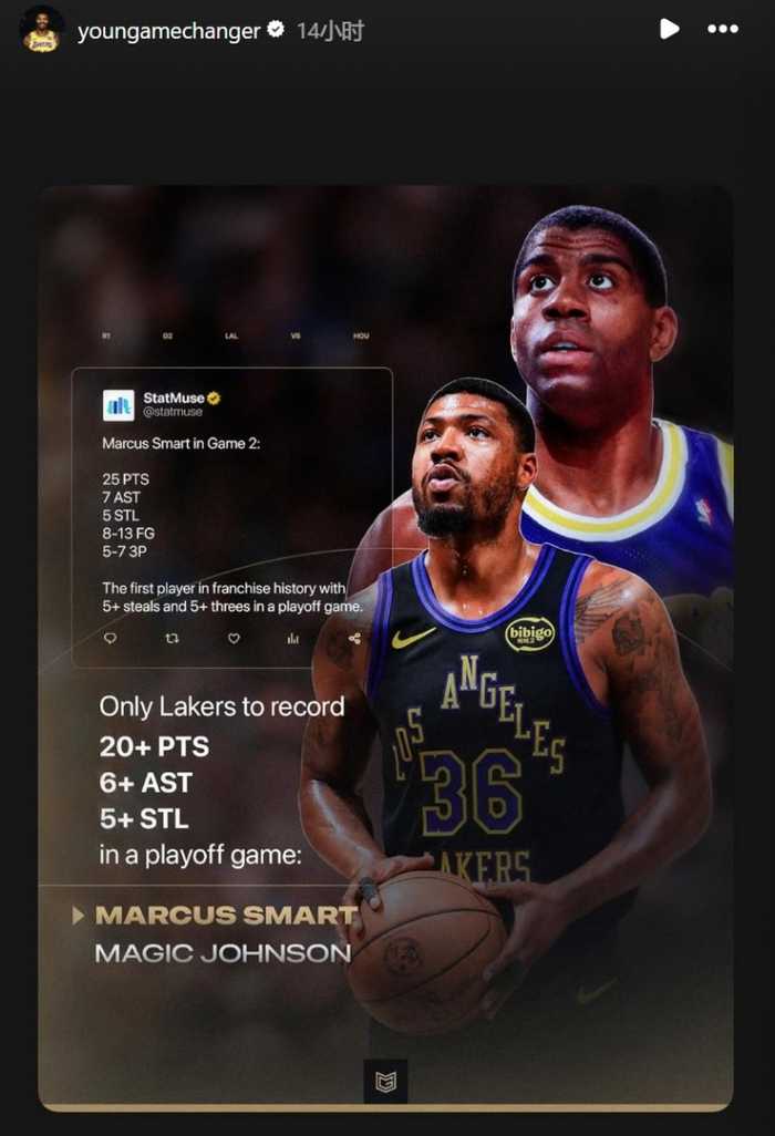 季后赛单场至少20分6助5断&湖人队史第二人比肩魔术师 斯玛特转发